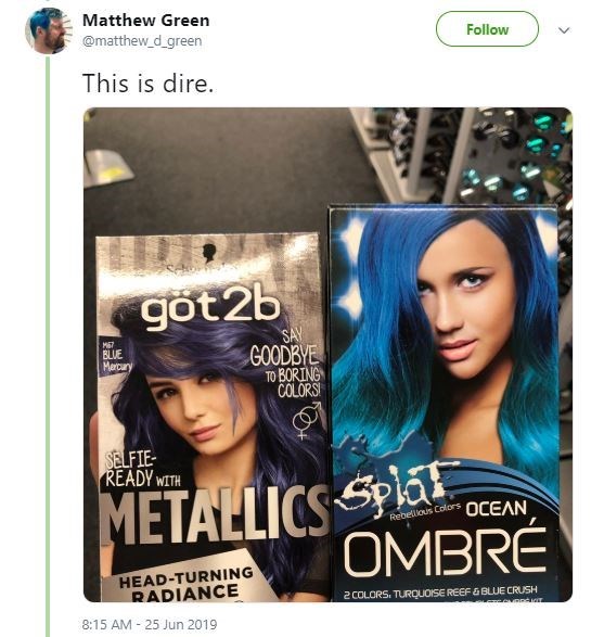 Answered this question why blue hair turns green in an. Most professional hairdressers use joico hair dyes for hair color turned green for some users. Why bleached hair can turn green when you dye it brown. Carol's hair turned green after using the dye on her blonde lockscredit: Which will end up green.